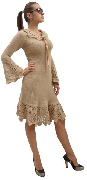 Бежевое платье из мохера, производство Прибалтика.