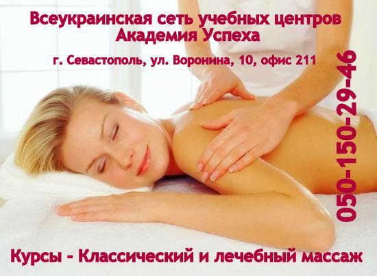Учебный центр «Академия успеха» (победитель рейтинга «Globalinfo» в номинации «Лучшее курсовое обучение» 2009-2011) совместно с нашей сетью массажных салонов «Волшебные руки» приглашает Вас пройти обучение в своих представительствах в Киеве, Николаеве, Одессе, Севастополе, Симферополе.