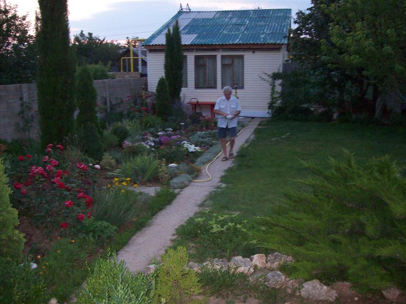 Территория ухожена. Цветы,елочки,кипарисы,можевельники,декоратитвный бассейн,газон,есть мангал и место для шашлыков.