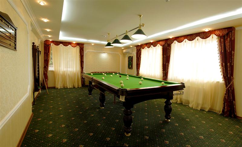 - В распоряжении гостей – открытый и закрытый бассейн, сауна, бильярд, тренажерный зал, лаунж-бар, охраняемая парковка для автомобиля, детская игровая площадка.
