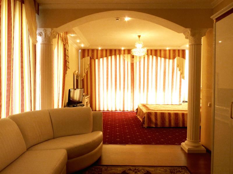 - Изысканная стильная гостиная с мягкой мебелью, телевизором, музыкальным центром, видеомагнитофоном;