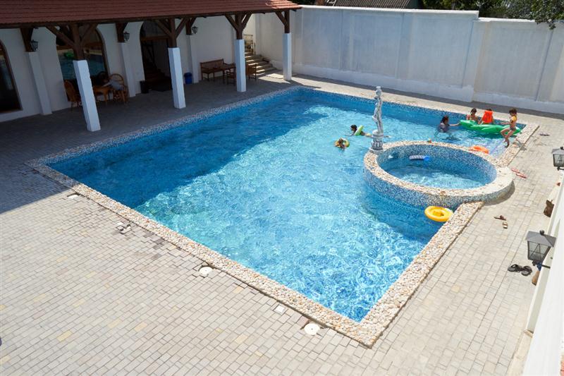 На закрытой территории имеется плавательный бассейн с подогревом. Питание гостей в собственном кафе с домашней кухней.