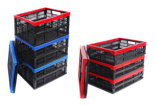 Пластмассовые складные ящики для пищевых продуктов разных размеров.