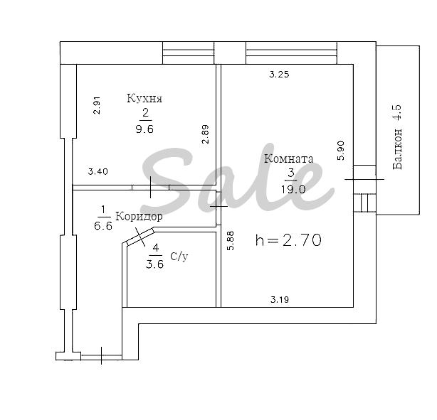 интернет, ТВ, домофонная система. Площадь - 42 м.кв., коридор - 6,6 м.кв., с/у - 3,6 м.кв., кухня - 9,6 м.кв., комната - 19 м.кв., балкон - 4,5 м.к.в. (застеклен).