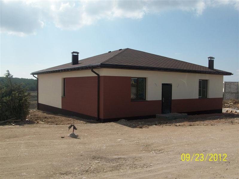 Стены дома покрыты декоративной штукатуркой типа «барашек», крыша – битумная с водостоками, качественные стеклопакеты «REHAU». Так же имеется чердак. Дом сдан в эксплуатацию и подготовлен под чистовую отделку. Уже выполнено: 1) шпаклёвка стен 2)стяжка полов 3)монтаж, шпаклёвка и покраска гипсокартона на потолках 4)разводка отопления от котла (газового либо электрического) по трубам, батареям, санузел 5) электропроводка в соответствии с проектом 6)трубы под водоснабжение подведены 7) крыша утеплена минеральной ватой Termolife толщиной 15 см.