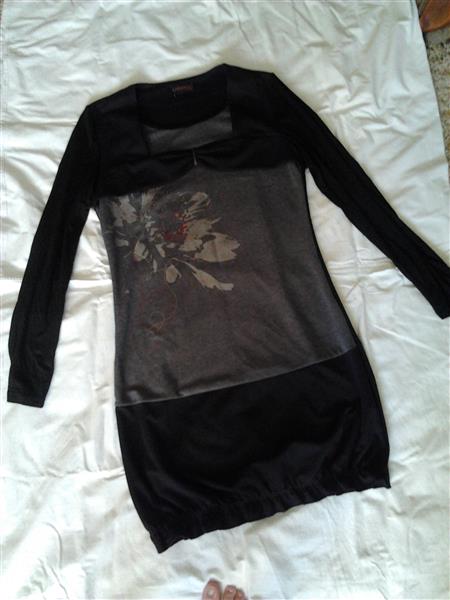 платье до колен,с длинным рукавом,трикотажное,черное с серым,снизу на резинке,размер 46-48.