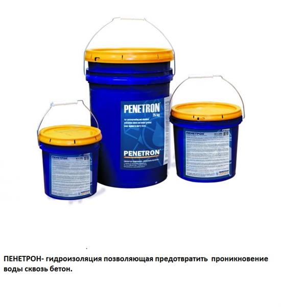 это вечная и надежная гидроизоляция позволяющая предотвратить проникновения воды сквозь бетон. Бетон обработанный пенетроном повышает прочность и защиту от воздействия кислот, морской воды, весенних паводков, а также бактерий, грибов, водорослей и морских организмов. Применяется на строительных объектах в 92 странах мира более 50 лет!