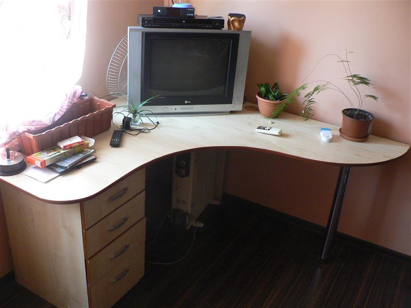 Продам большой компьютерный стол в хорошем состоянии. Отсутствует выдвижная доска для клавиатуры. Цвет - светлое дерево. Есть отверстие для шнуров. 500 грн. Размеры: 1455 мм х 1595 мм.
