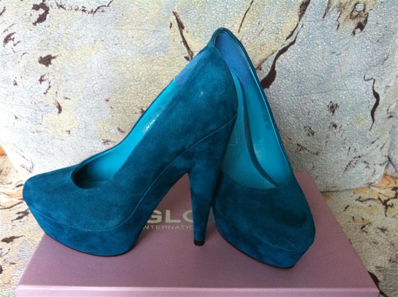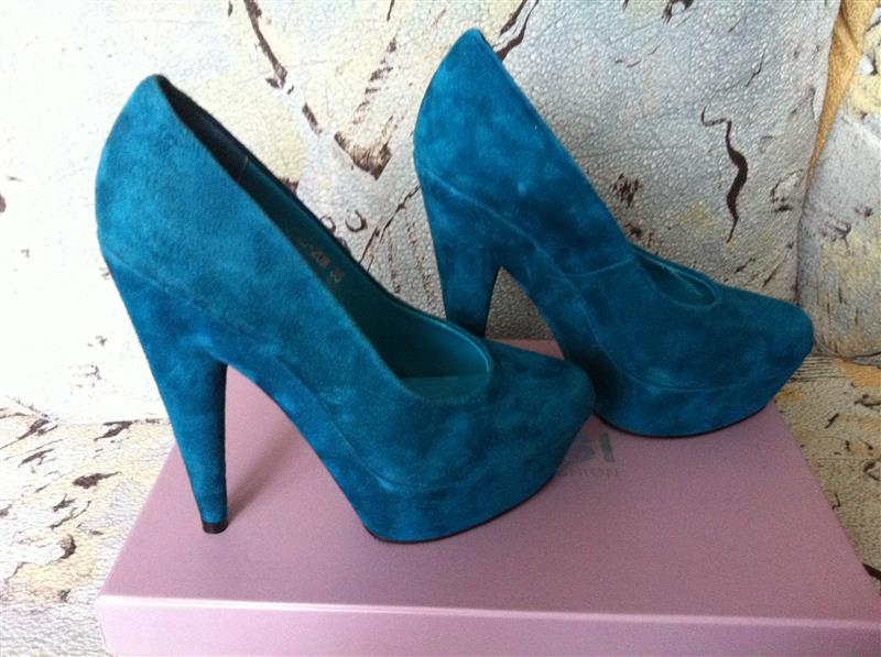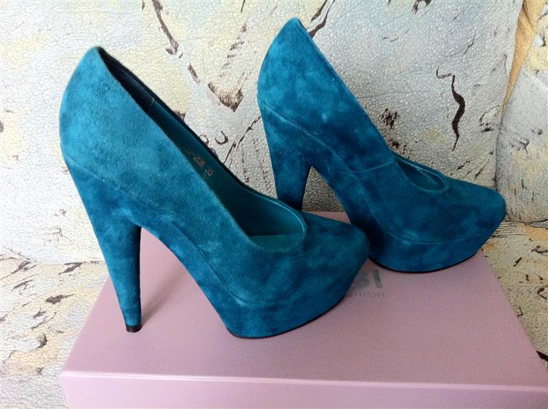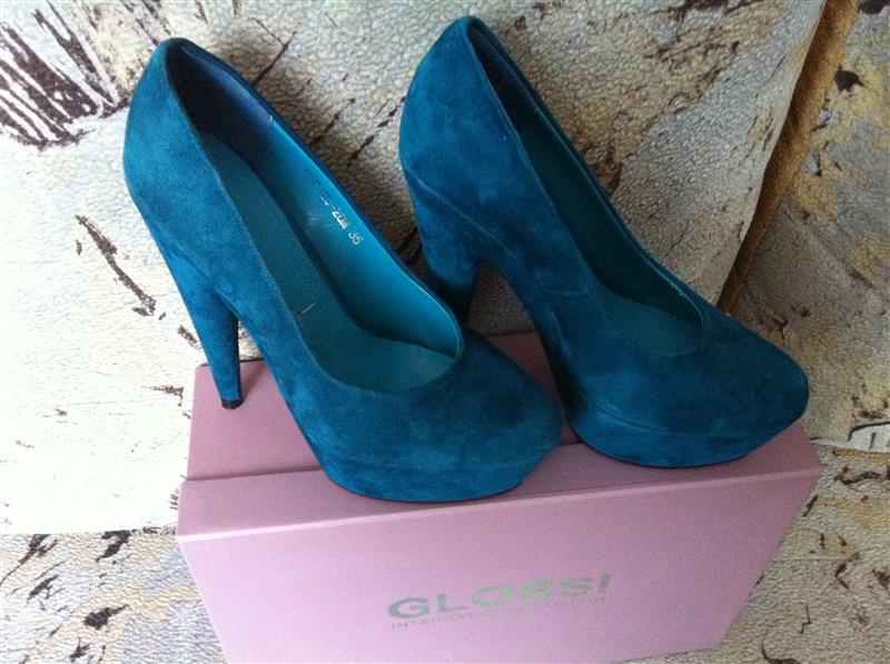 Новые шикарные замшевые туфли,ни разу не одеты,голубого цвета,35 размер,каблук 14 см,платформа 3.5см,привезли,но не подошел размер!Фирма Glossi. 300 гр
