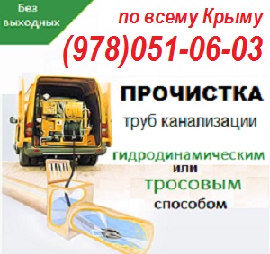 Заказать прочистка канализации Севастополь (Центр, Стрелка, Летчики, Улица Героев Сталинграда, Камышовая бухта, Казачья бухта, Радиогорка, Учкуевка, Любимовка, Орловка) можно по телефонам: