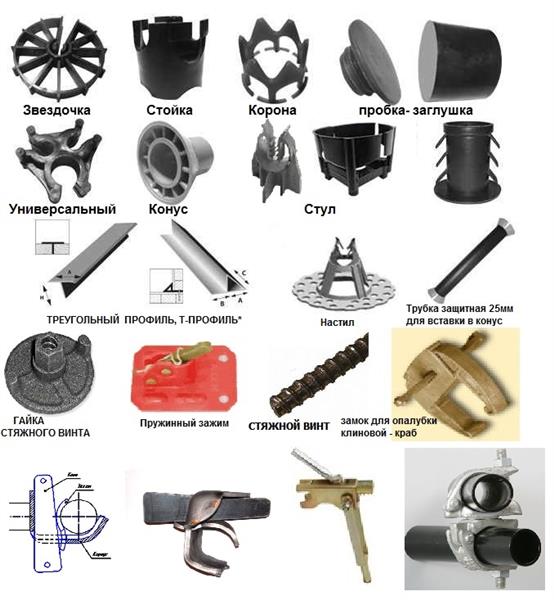 15,20,25,40,45,50); "стул" (защитный слой - 20,35,50); "настил" (защитный слой - 15,20,25,30,40,50,60,70); "универсальный" (защитный слой - 15 мм); "звездочка" (защитный слой - 10,15,20,25,30,40,50 мм); "конус" (вн.диам. 22 мм)
