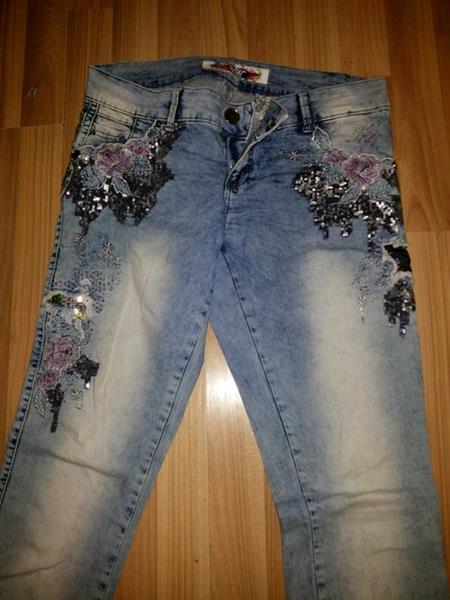 джинсы розмер 30-31 голубые в стразах и серые с потертостями тел 0995440464