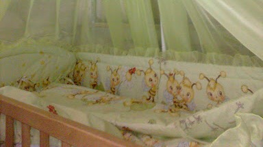 1) Детская постель в кроватку из 7 предметов с рюшей (Без балдахина)- 415,00