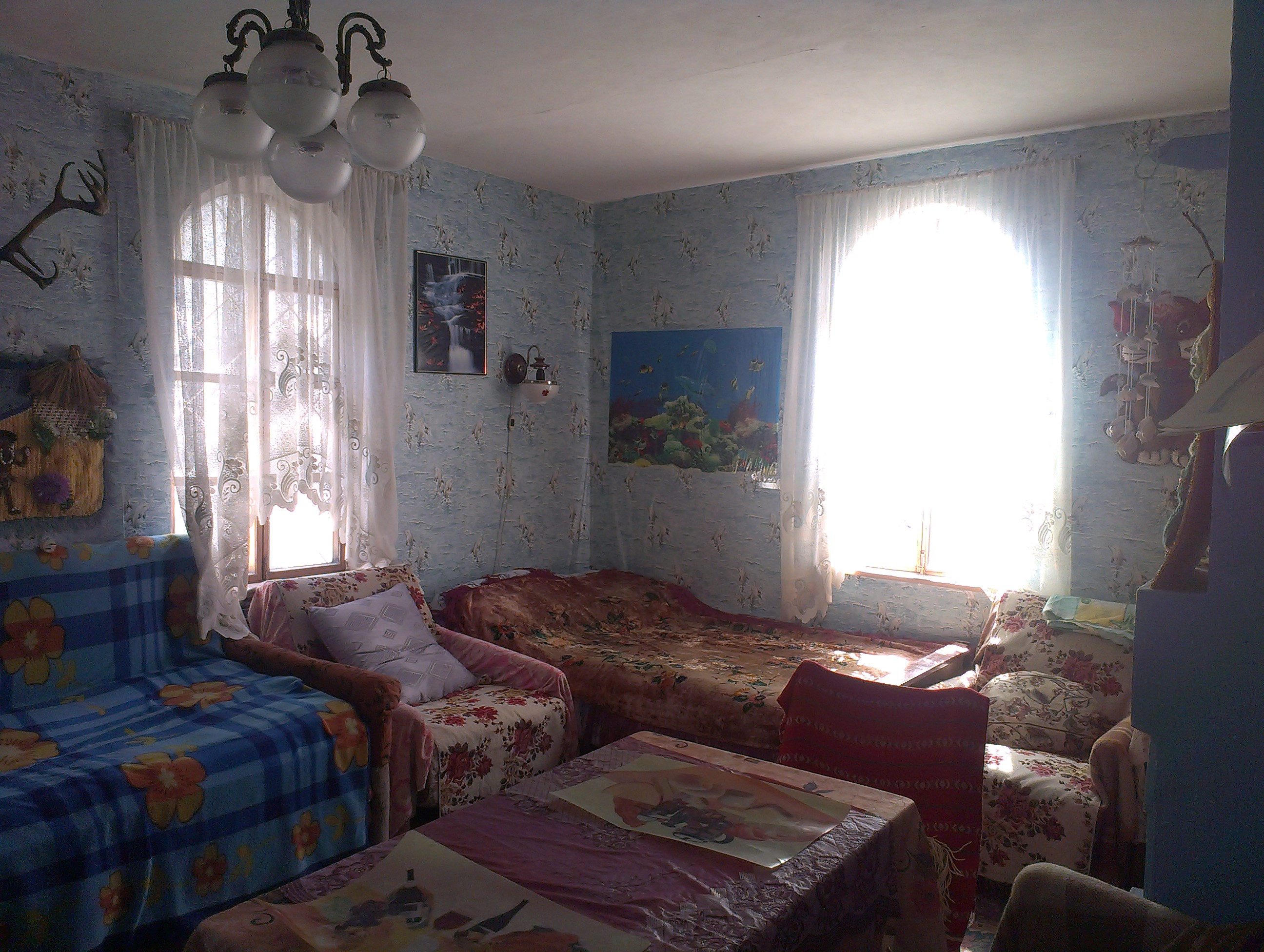На первом этаже камин и печка. На втором — печка. На всех окнах решётки. Вода — ёмкость 7 куб м. Туалет на участке.
