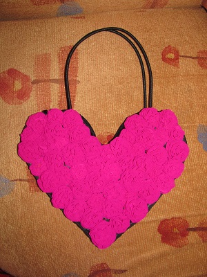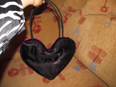 Оригинальная сумочка в форме сердца, цвет яркая фуксия, материал шифон и черный атлас, ручная работа, есть наружный и внутренний карман.