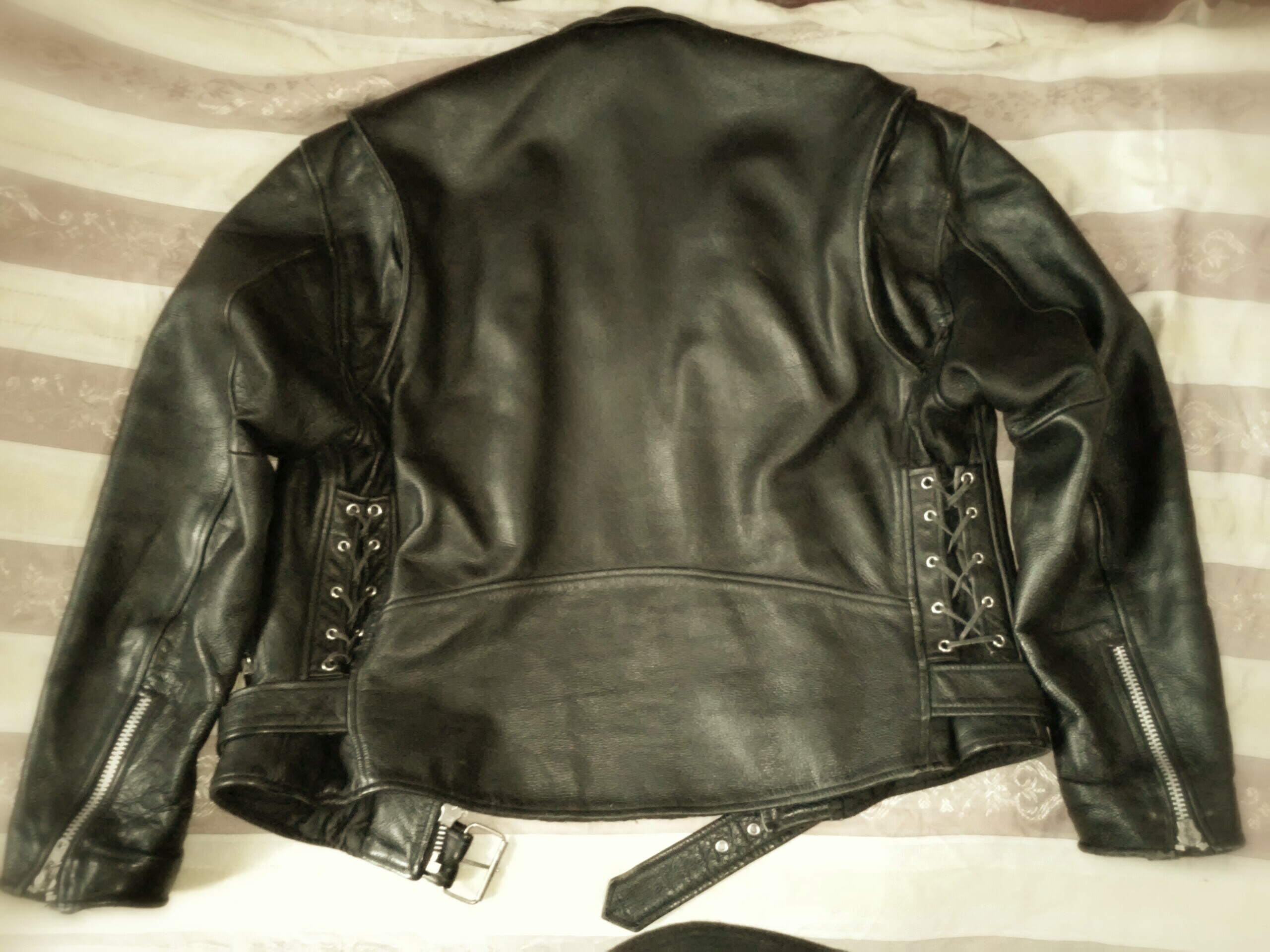 Качественно-выделанная, из прочной, толстой, и в тоже время, мягкой бычьей кожи. Стеганая, внутренняя подкладка чёрного цвета. Дополнительно прошнурована по бокам.