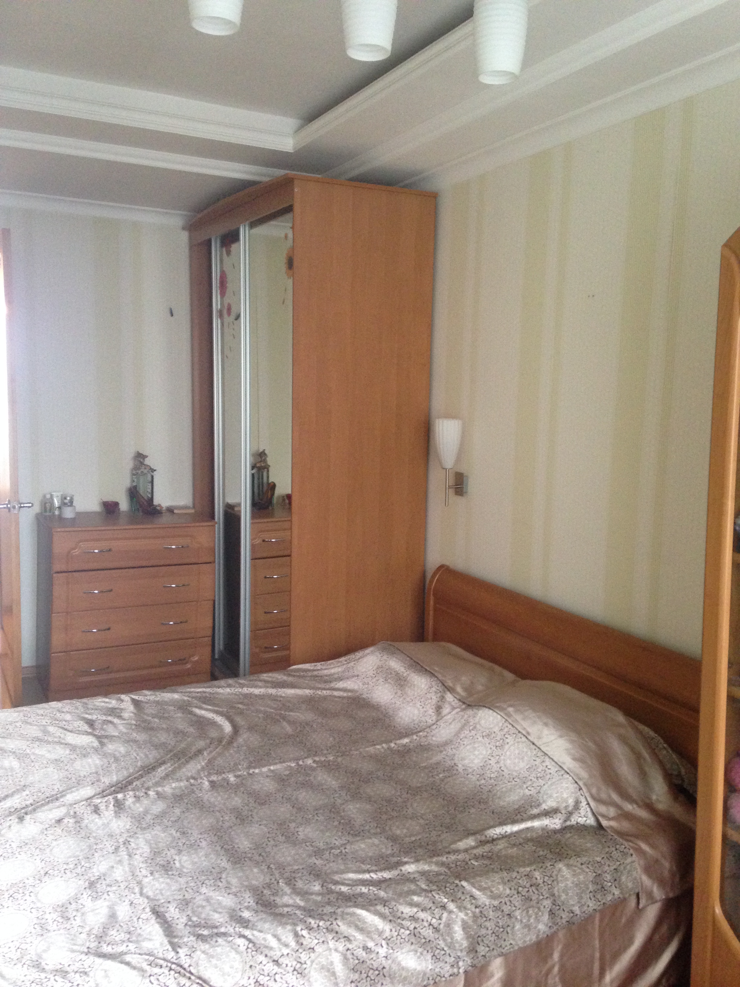 В другой комнате двуспальная кровать, мебель.