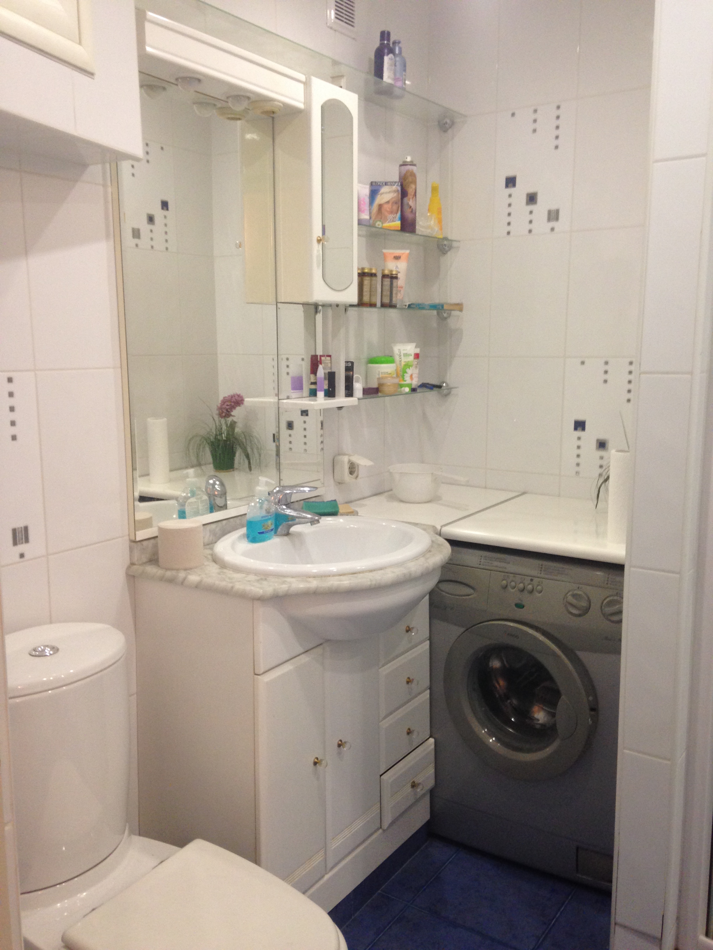 В ванной комнате стиральная машина,