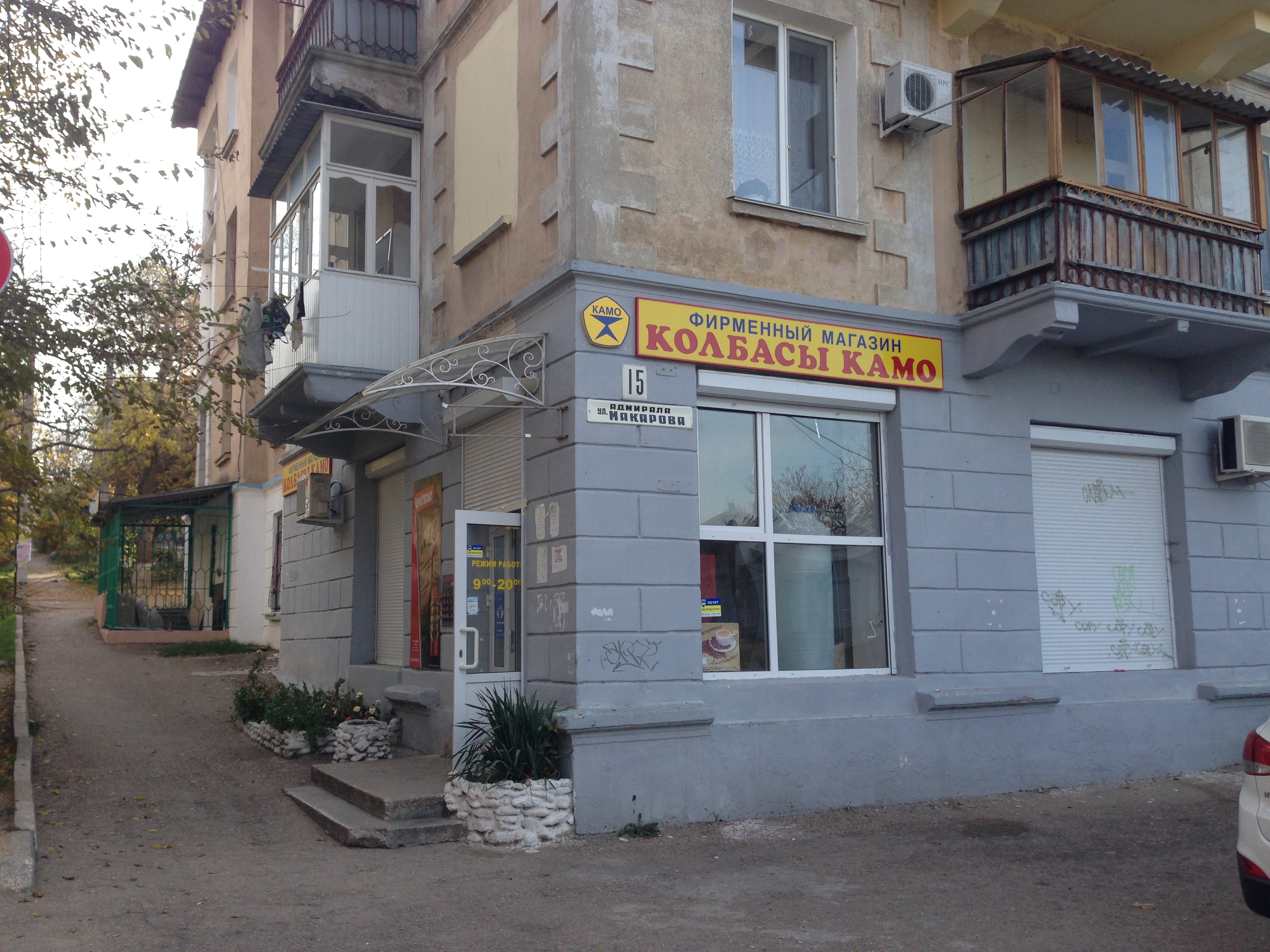 Магазин расположен в очень удобном для торговли месте: рядом остановка троллейбуса № 1, маршрутного такси № 26, 4,парк с видом на море.
