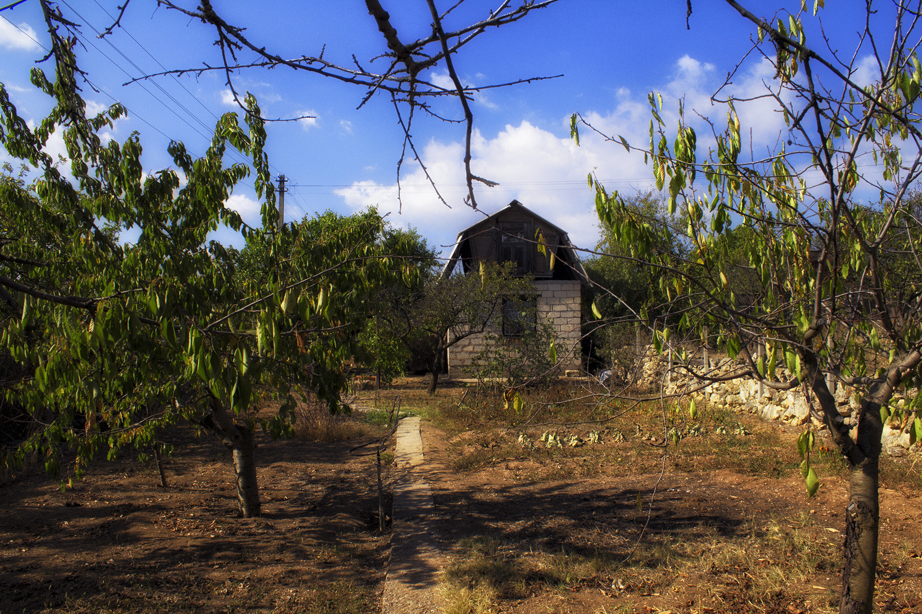Сад: 3 черешни, персик, абрикос, слива, вишня, смородина, миндаль, инжир - все деревья обильно плодоносят