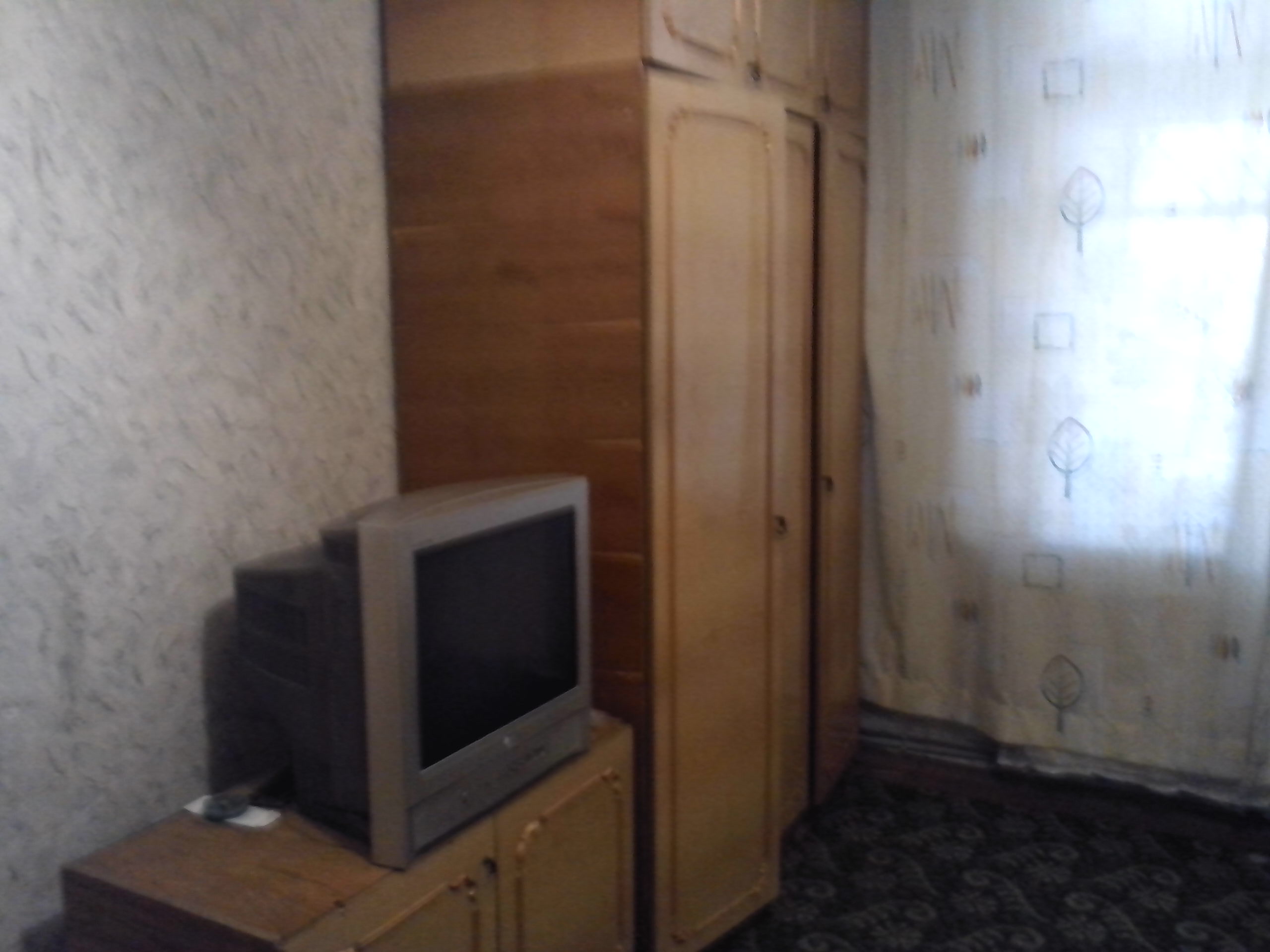 В комнате диван,шкаф, телевизор.
