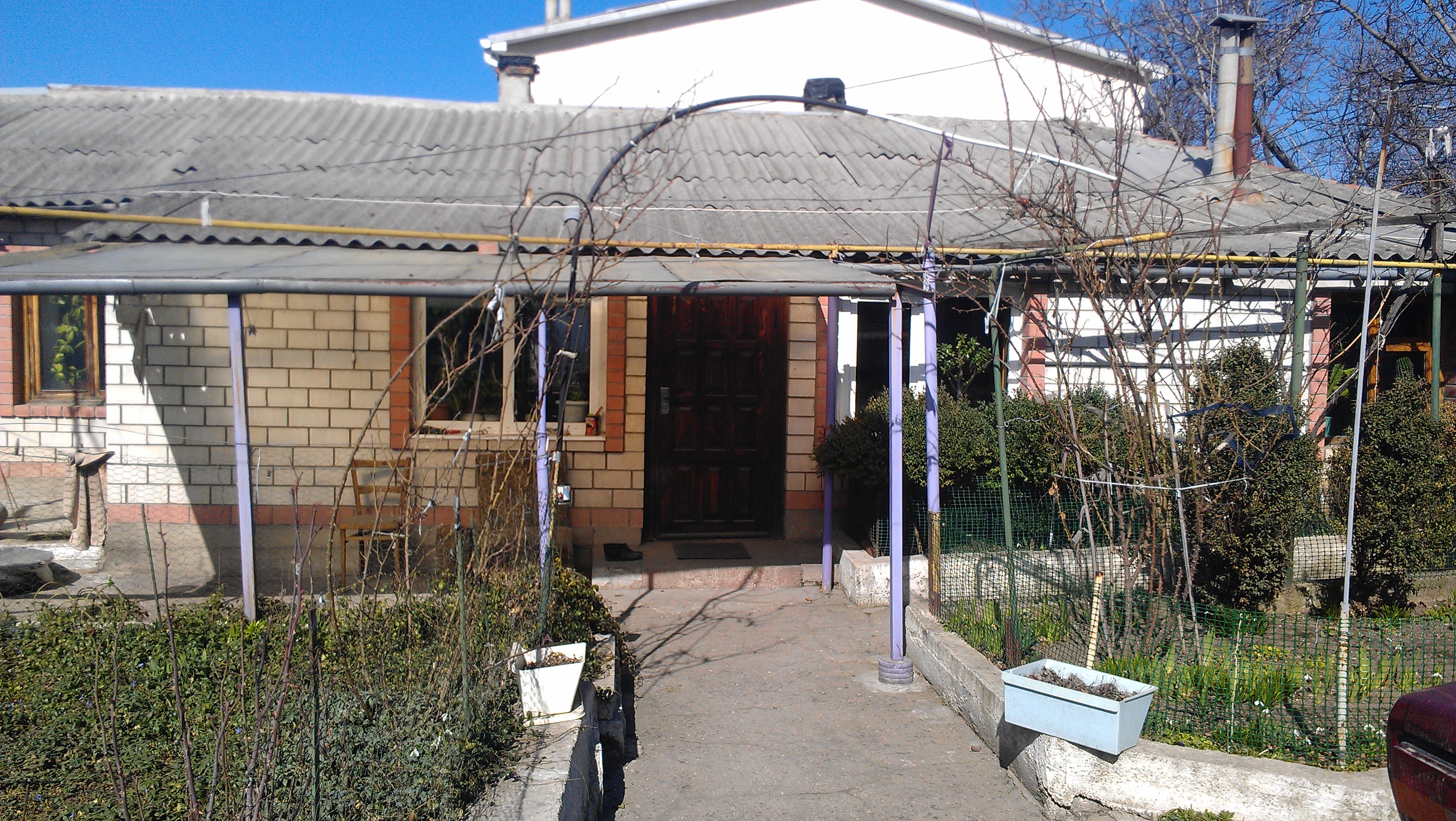 Земельный участок 6 соток, растут фруктовые деревья, двор асфальтирован. На участке 2 жилых благустроенных времянки 40м.кв. каждая. Навес для авто.