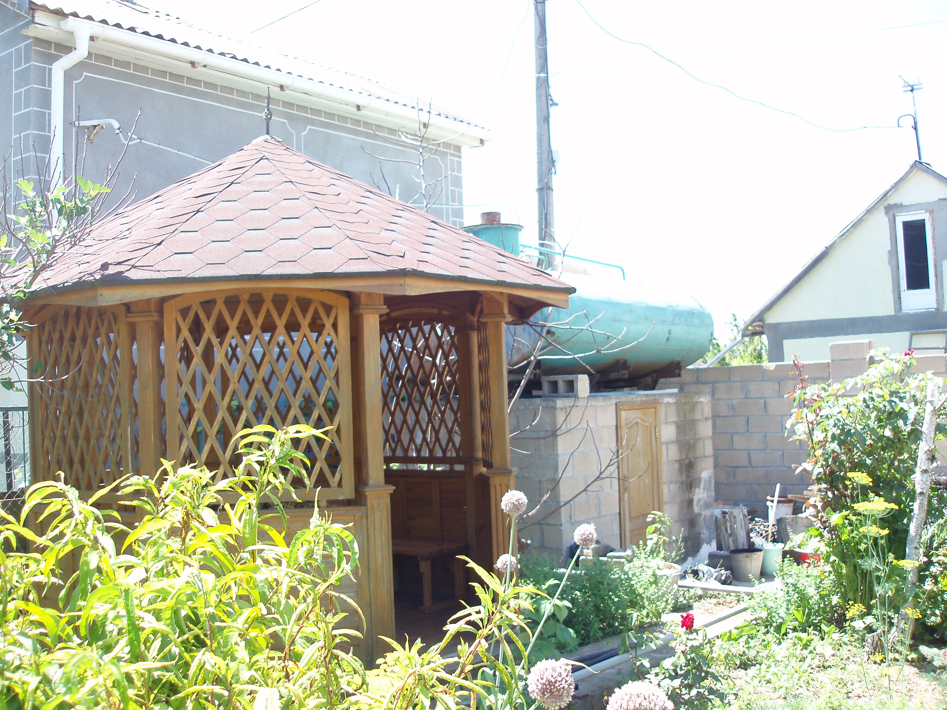 2) Летний душ, емкость 6 куб., беседка, молодой фруктовый сад.