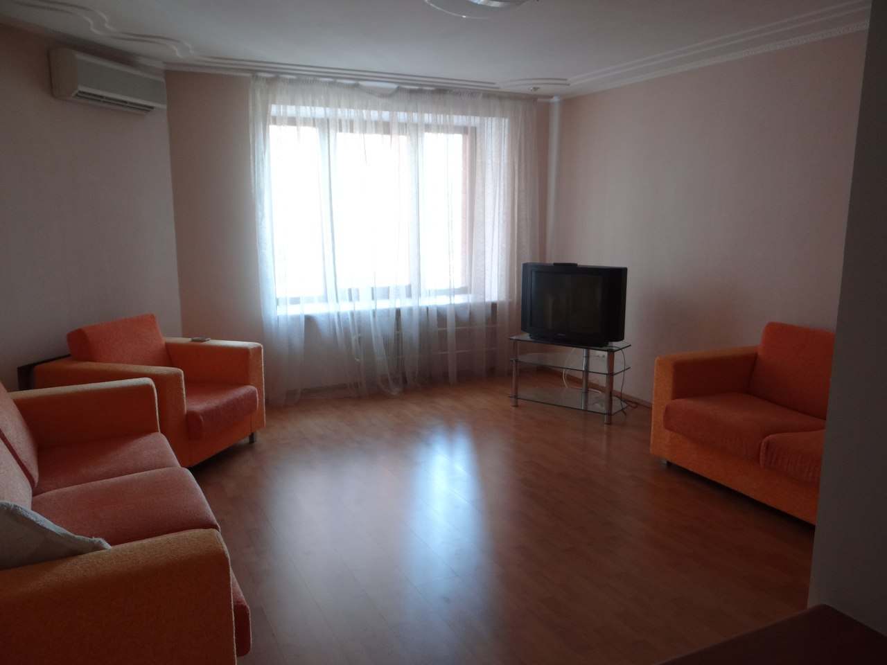 евро-ремонт, встроенная кухня, современная мебель, кондиционер, бытовая техника, wifi, двух спальная кровать с ортопедическим матрасом, зеркальный шкаф купе, двух спальный диван, ламинат, ванная, комнаты-раздельные, стекло-пакет, отличное состояние, на длительный срок.
