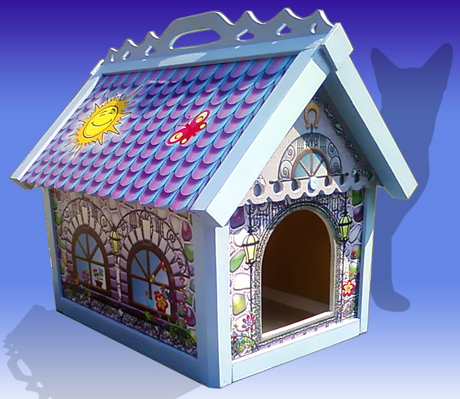 Продам Кошкин дом, handmade. Внешние размеры 39х53, высота 50 см. Сделан из натуральных материалов (многослойная фанера толщиной 6 мм, хвойный брус). Применена принтроспись по фанере и акриловый лак. Для удобства уборки предусмотрена съемная крыша. Цена 7700 руб. Тел. +7978-7659357, Светлана.