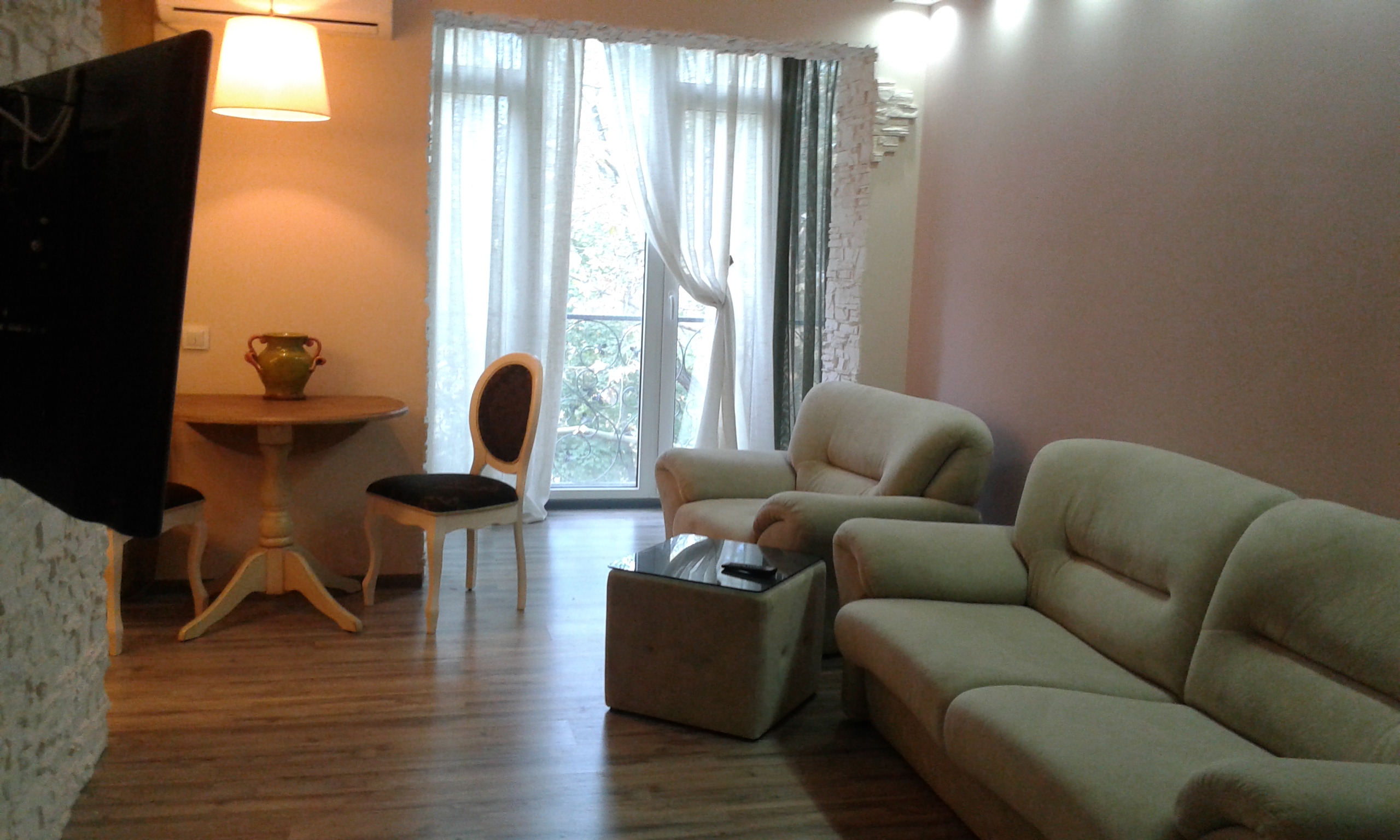 В квартире есть все для комфортного проживания: красивая новая мебель, вся необходимая бытовая техника (микроволновая печь, холодильник, стиральная машина), кондиционер, wi-fi, домофон, кабельное телевидение.