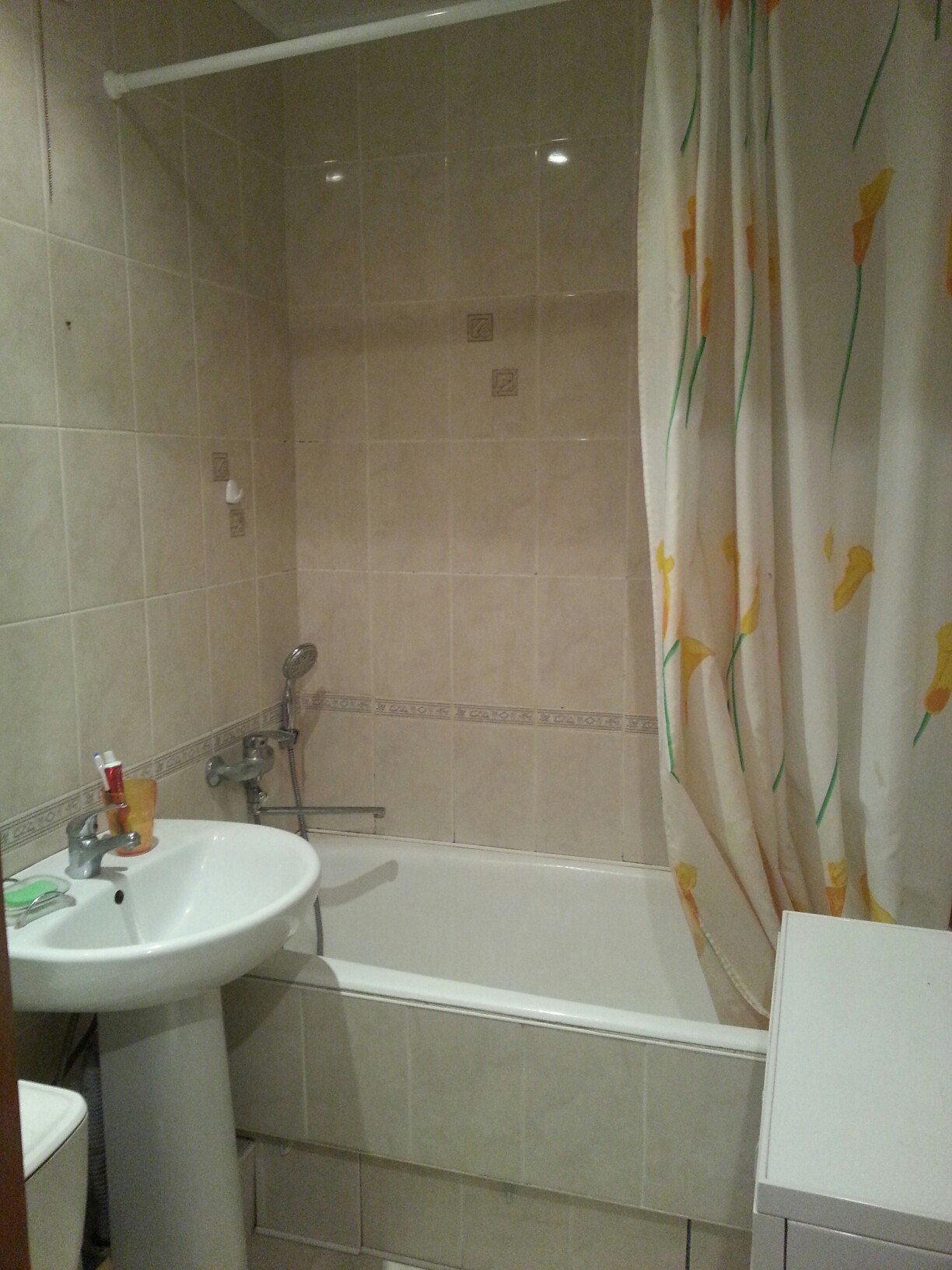 в квартире нормальная мебель, необходимая техника, ванна в плитке, стиральная машинка, телевизор, холодильник, газовая плита с духовкой, интернет, светлая квартира в хорошем районе возле Юмашевского рынка, рядом с остановкой.