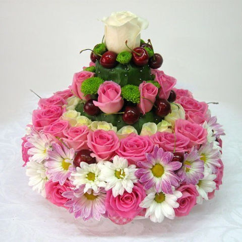 сборка букета на портбукетнице и изготовление бутоньерки;