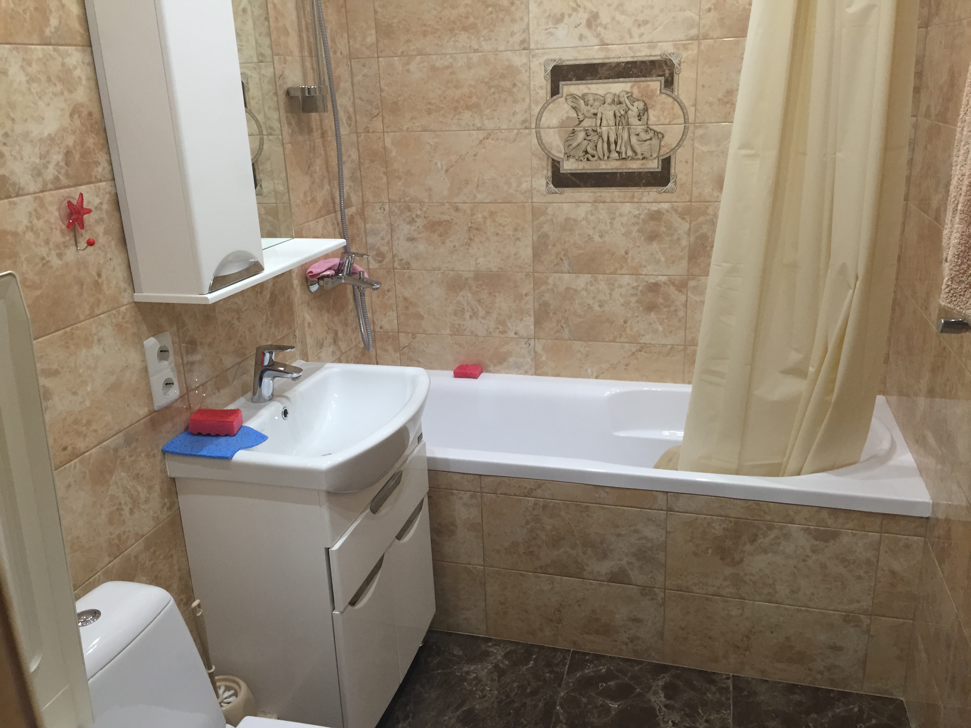 хорошая новая квартира возле Парке-Победы, в квартире два телевизора, кондиционер, стиральная машинка, wi.fi, встроенная кухня, полы ламинат, микроволновая печь, возле дома остановка транспорта, супермаркет.