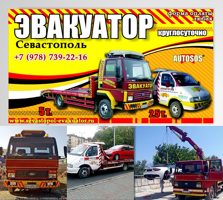 Для эвакуации используем только современные эвакуаторы (Севастополь), оборудованные всем необходимым для эвакуации.