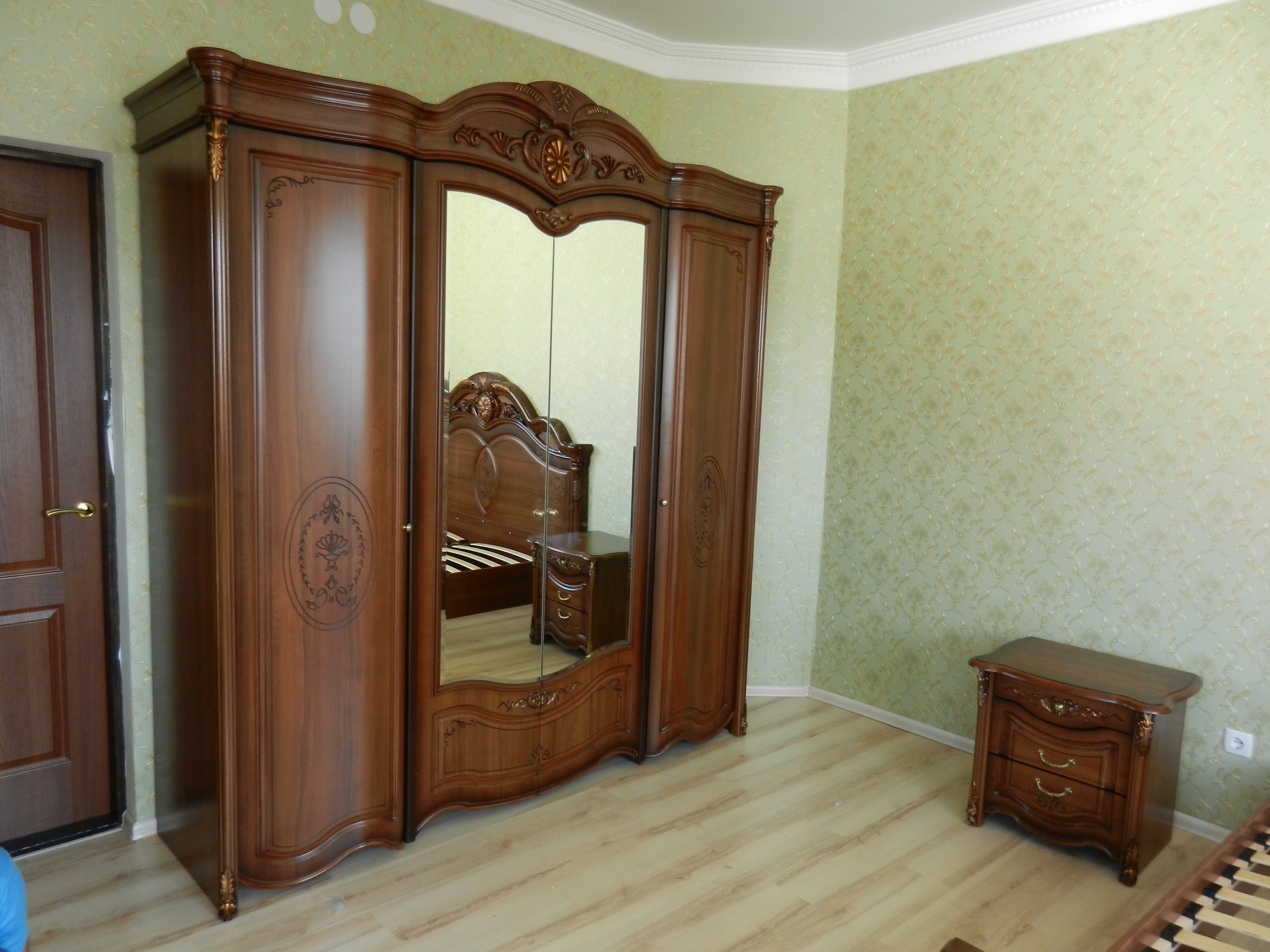 Спальный гарнитур Джаконда, 97500 руб., сп Италия- Беларусь, выполнена в классическом стиле орех Италия, все декор элементы патина золотом. Фасадная часть из кашированного МДФ, а резные пилястры изготовлены из полиуретана. Кровать 180, 2-е тумбы, комод+зеркало, шкаф 4-Д. Доставка,сборка, гарантия качества. +7978 744 10 20 Сергей