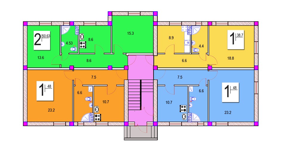 В наличии есть несколько видовых квартир большой площади.