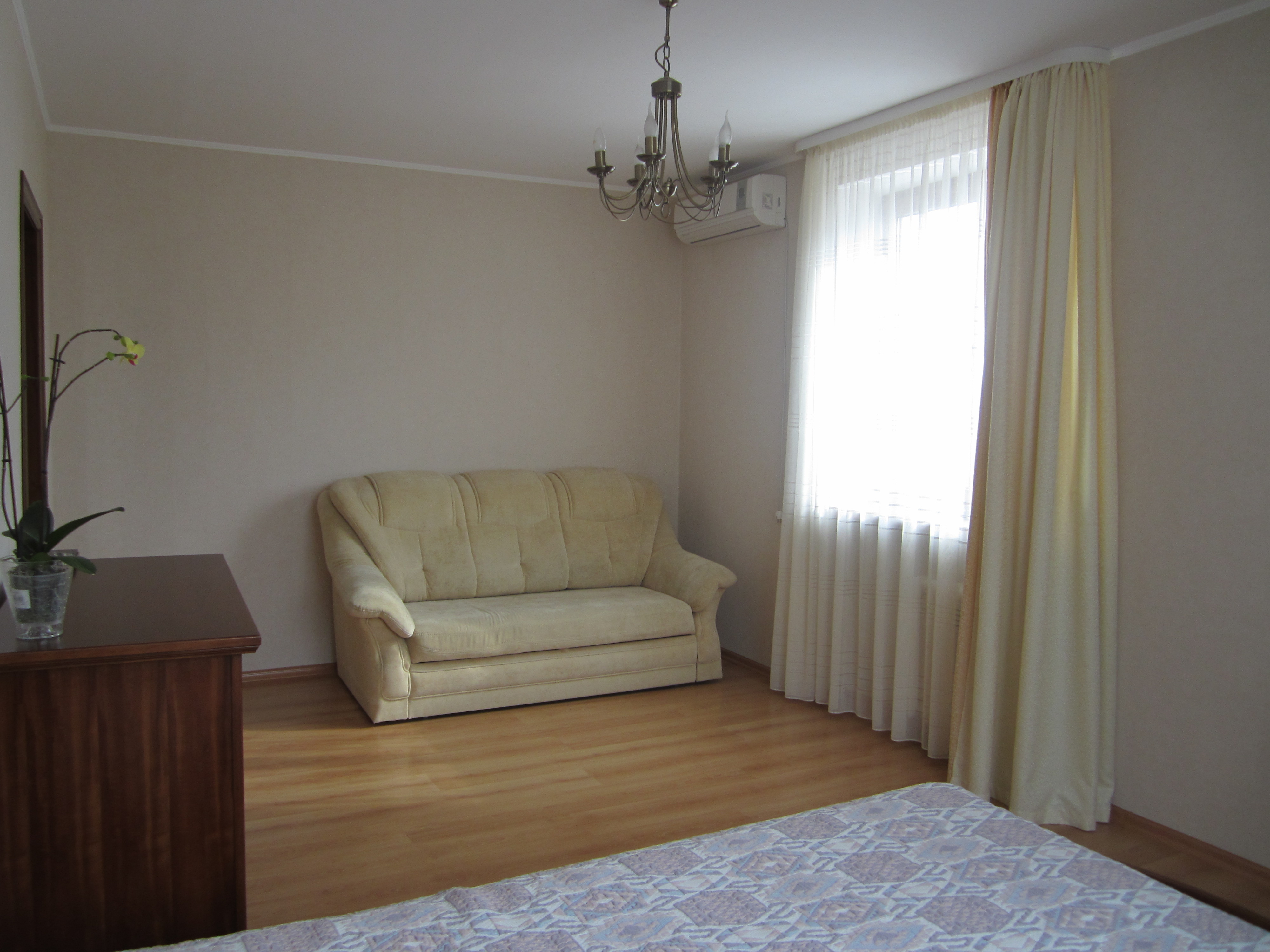 просторная светлая квартира, хорошая современная мебель и техника, кондиционер, двуспальная кровать с ортопедическим матрасом, раскладывающийся двуспальный диван, встроенная кухня, посудомоечная машинка, автономное отопление, всё в отличном состоянии.