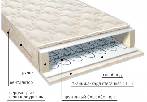 В основе матрасов серии Классик находится пружинный блок Bonnel, который по периметру может быть усилен двумя металлическими рамками жесткости.