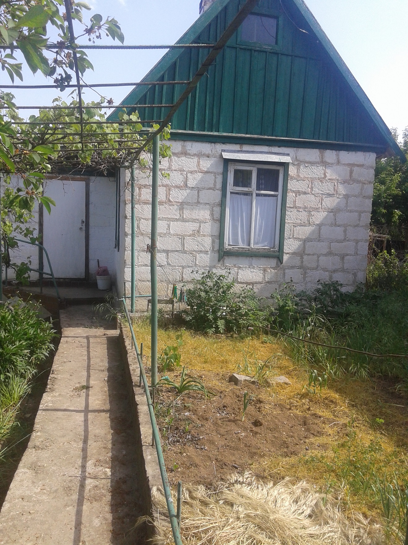 Участок 4 сотки, госакт, кадастровый паспорт. Свет подключен, вода кооперативная по графику, газ рядом. Участок ухоженный, ровный, огорожен сеткой, металлическая калитка. Есть емкость для воды и небольшое помещение для хранения инвентаря. Небольшой домик. В доме коридор, кухня, комната, чердак, печное отопление. Дом сухой, крыша не течет. Туалет на улице. Хороший подъезд, до асфальта 50 метров, до остановки 2 минуты.