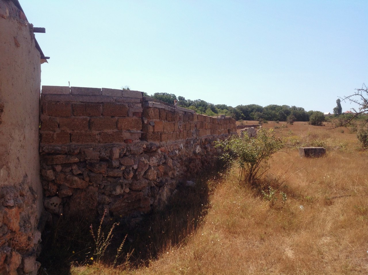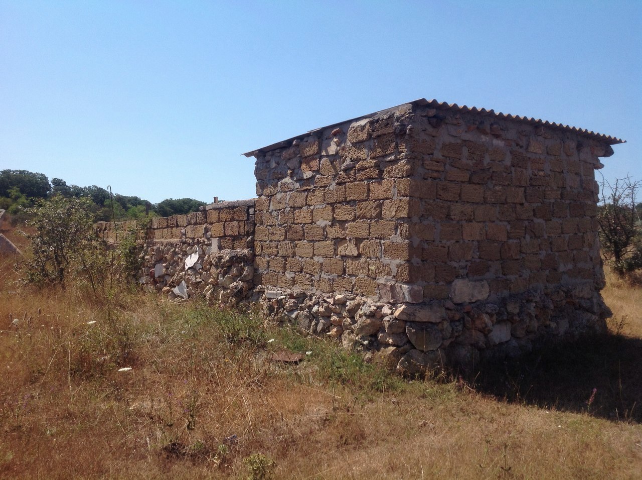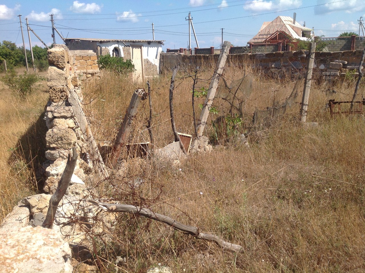 На участке ёмкость и небольшая хоз постройка, частично огорожен.