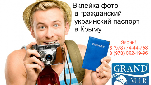 Компания "Гранд-Мир" помогает без выезда на территорию Украины вклеивать фото в гражданский украинский паспорт по наступлению 25 и 45 летия.