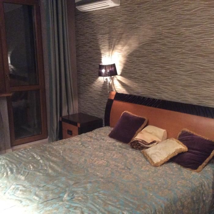 встроенная кухня, современная мебель, угловой двуспальный диван, двуспальная кровать, зеркальный шкаф-купе, полы с подогревом, ванна, гардеробная, сейф.