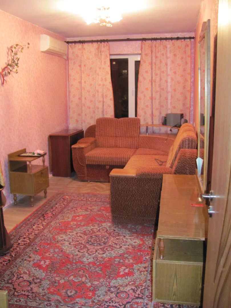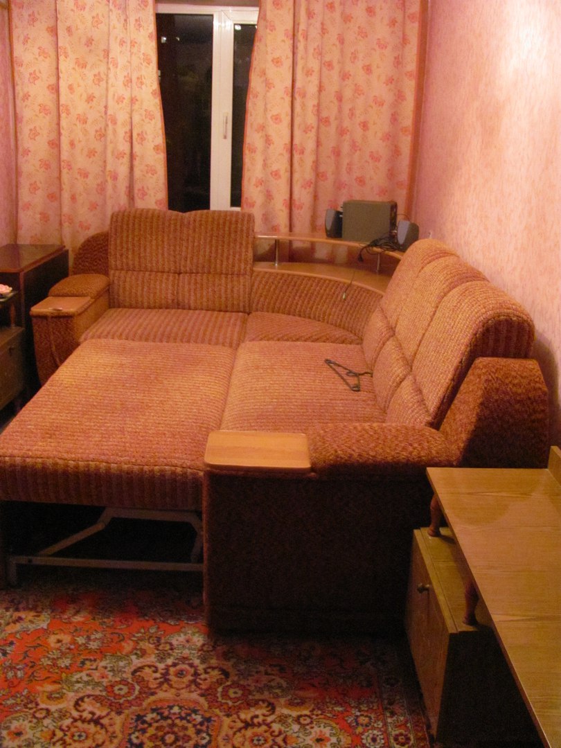 телевизор, холодильник, стиральная машина автомат, электро чайник, бойлер, двух спальный диван, стекло-паке, отличное состояние, на длительный срок.