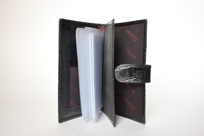 Стильная и функциональная документница из качественной натуральной кожи. Производитель- Desisan/Турция. Застегивается на клапан с кнопкой. Внутри 2 отдела. В первом- прозрачный, вынимающийся блок для авто-документов, 4 кармашка для карточек, 1 кармашек на сетке. Во втором- отделение для паспорта. Размеры 14 x 9,5 x 1,5 см