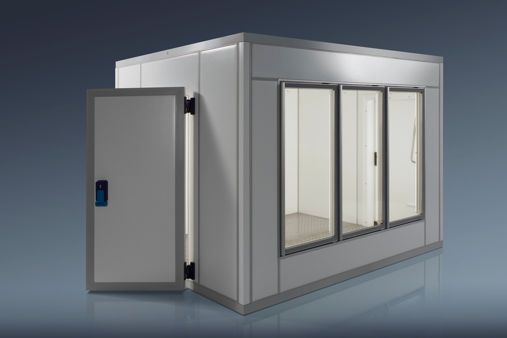 ЗАО «Ариада» производит широкий спектр модульных быстросборных холодильных камер для торгово-складских помещений, аптек, торговых залов. Кроме типовых моделей, объемом от 3 до 800 м3 проектируются и производятся камеры точно вписывающиеся в заданный габарит. Холодильные камеры обеспечивают качественное хранение продуктов при температуре: -2:+6°С (среднетемпературные), - 15:-25°С(низкотемпературные). Собираются холодильные камеры из теплоизоляционных трехслойных сэндвич-панелей, соединяемых между собой специальным ПВХ-замком типа "шип-паз" по технологии фирмы "VERKOS" (Италия). Дверные блоки для холодильных камер комплектуются фурнитурой итальянского производства.