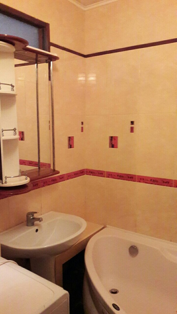 современная мебель, встроенная кухня, колонка, холодильник,стиральная машина автомат, телевизор,двуспальная кровать с ортопедическим матрасом,двух спальный диван, комнаты-раздельные, стекло-пакет, отличное состояние, на длительный срок.