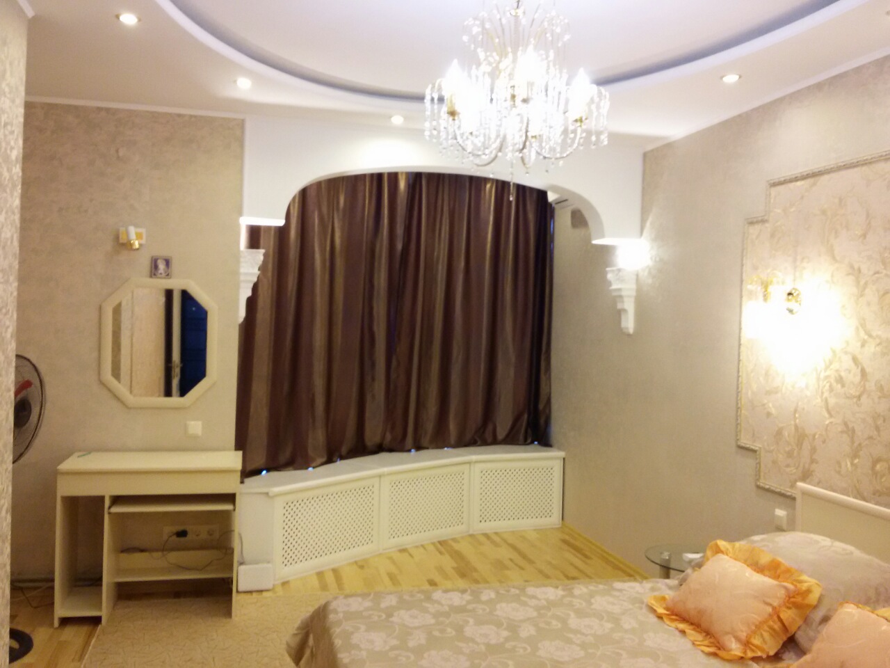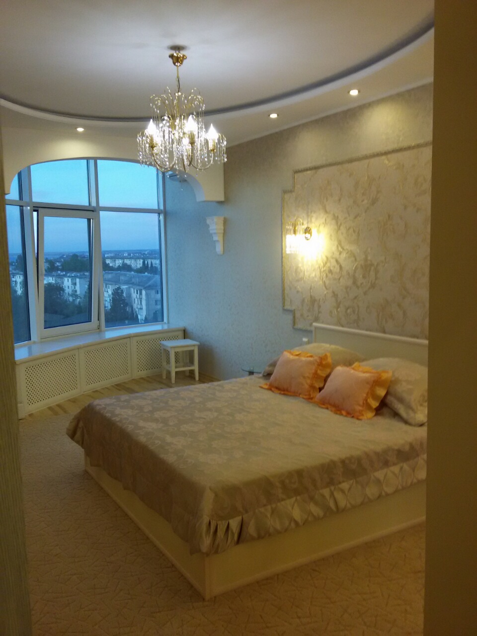 Сдается 1-комнатная элитная квартира 54 кв.м в элитном охраняемом доме, в Севастополе, квартира на 9 этаже 12 этажного дома с видом на море, лифт работает постоянно, в квартире сделан очень качественный и дорогой ремонт. Везде теплые полы. В спальне большая 2-х спальная кровать, журнальный столик, шкаф купе, на стене плазма, рабочий столик с зеркалом, большие окна с видом на море, окна при необходимости закрываются темными плотными шторами для комфортного сна днем, в спальне висит большая шикарная люстра, на кухне есть вся техника и оборудование, холодильник, духовка, посудомоечная машина, варочная панель на 4 комфорки, вытяжка, 2-кондиционер, мойка, стол и стулья, микроволновка, из кухни выход на балкон, в ванной комнате стиральная машина, биде, унитаз, угловая ванная.
