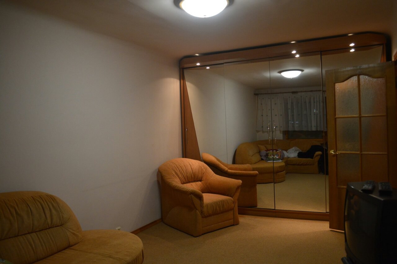 зеркальный шкаф купе, двух спальный диван, микроволновая печь, телевизор, холодильник, стиральная машина автомат, отличное состояние, на длительный срок.