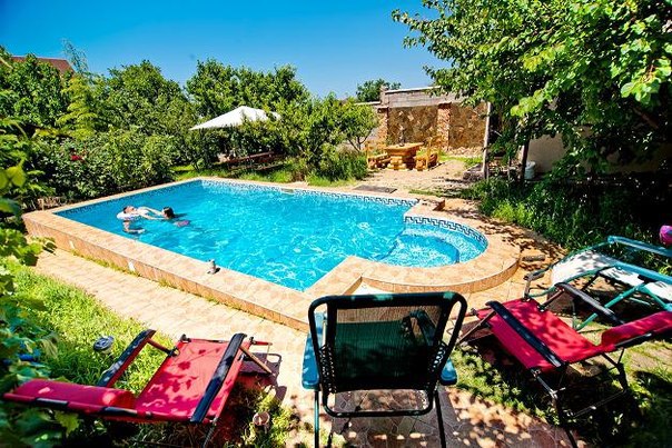 Прохладный бассейн охладит вас в знойный день. Мамы могут позагорать в шезлонгах у бассейна пока детвора плещется в воде.
