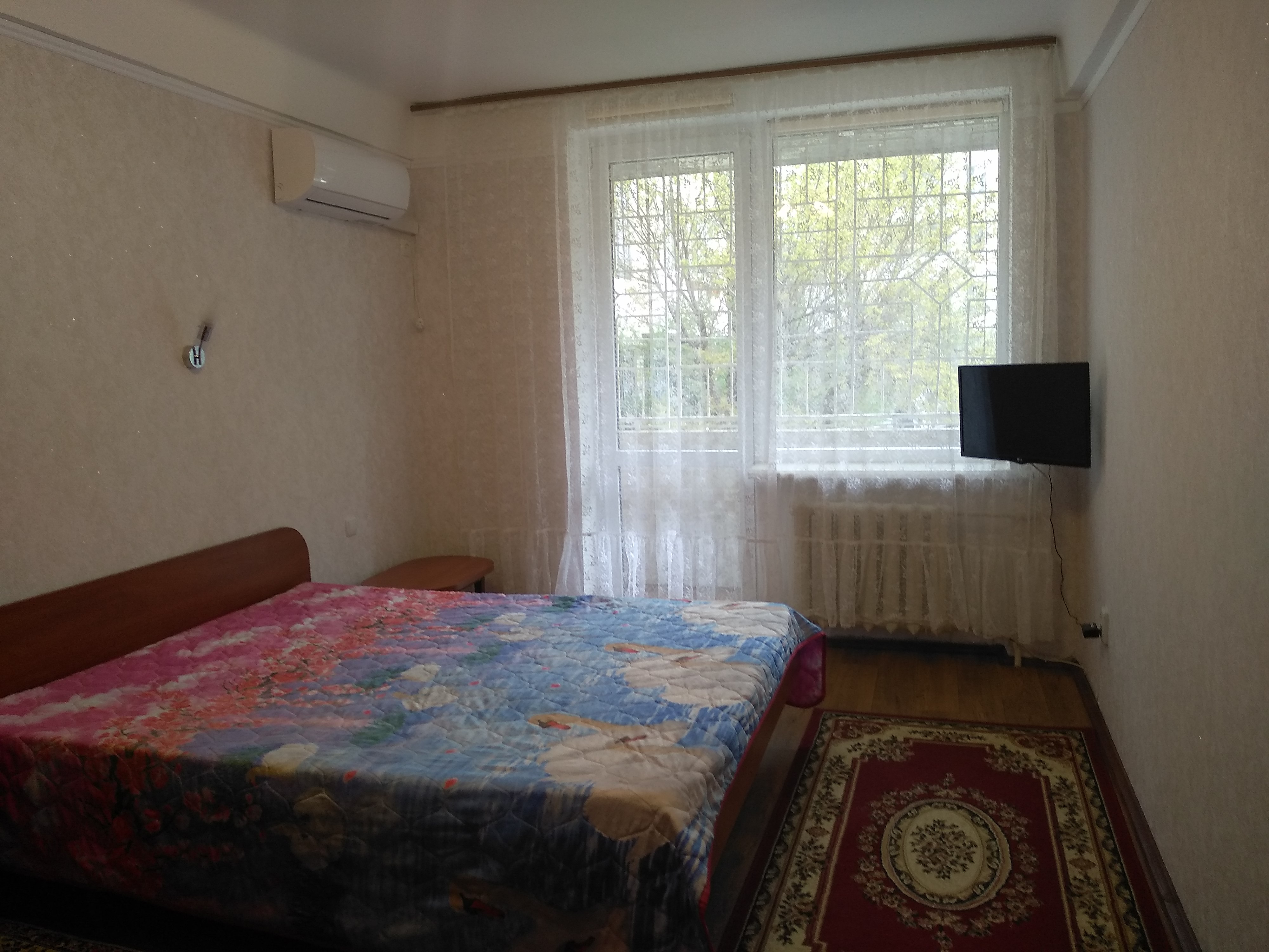 Есть все необходимое для проживания, кондиционер, кабельное ТВ, интернет, ст.машина, гор/хол вода круглосуточно, постельное белье и полотенце прилагаются.